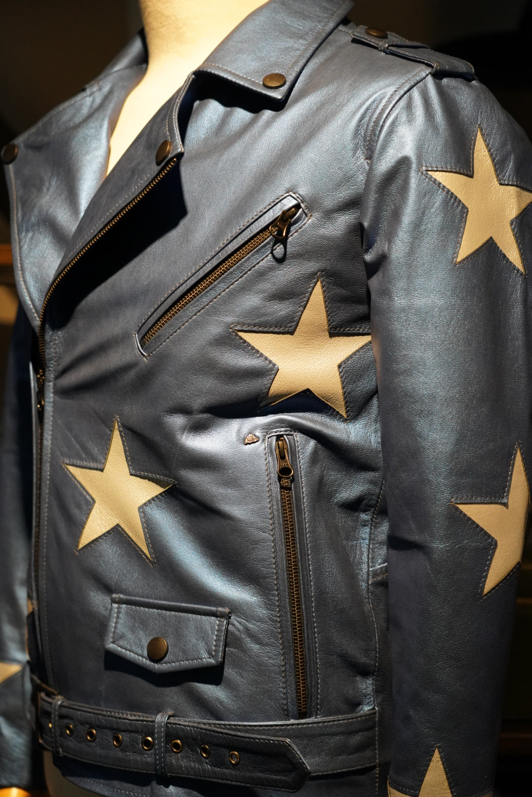 Chaqueta de Cuero Azul Metalizado Estrellas Bison