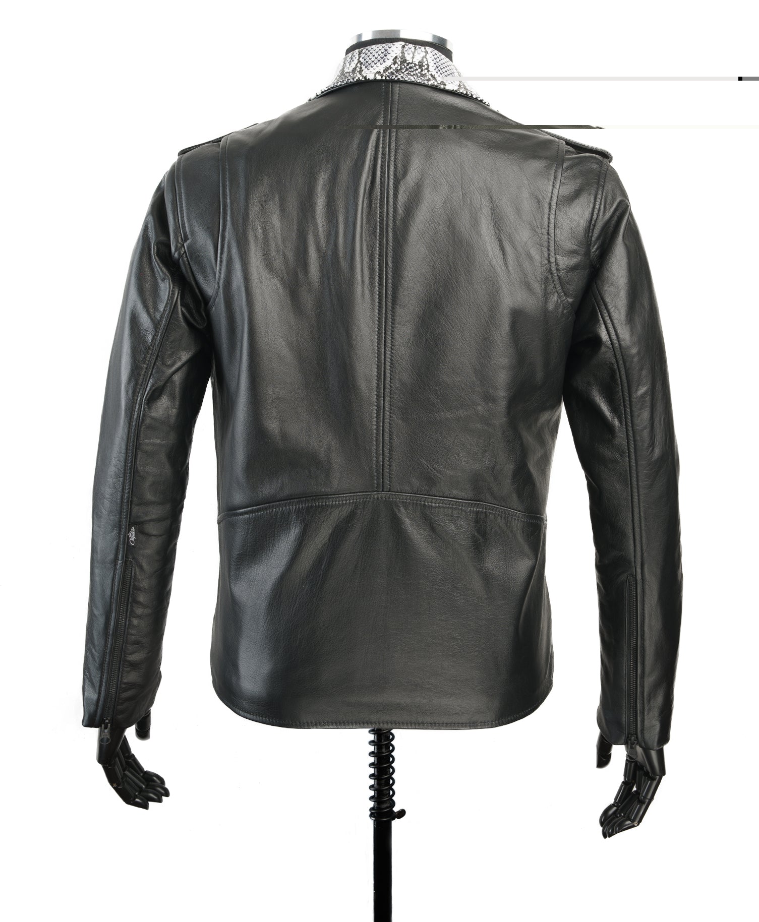 Chaqueta de Cuero Negro Solapa Folia Bison