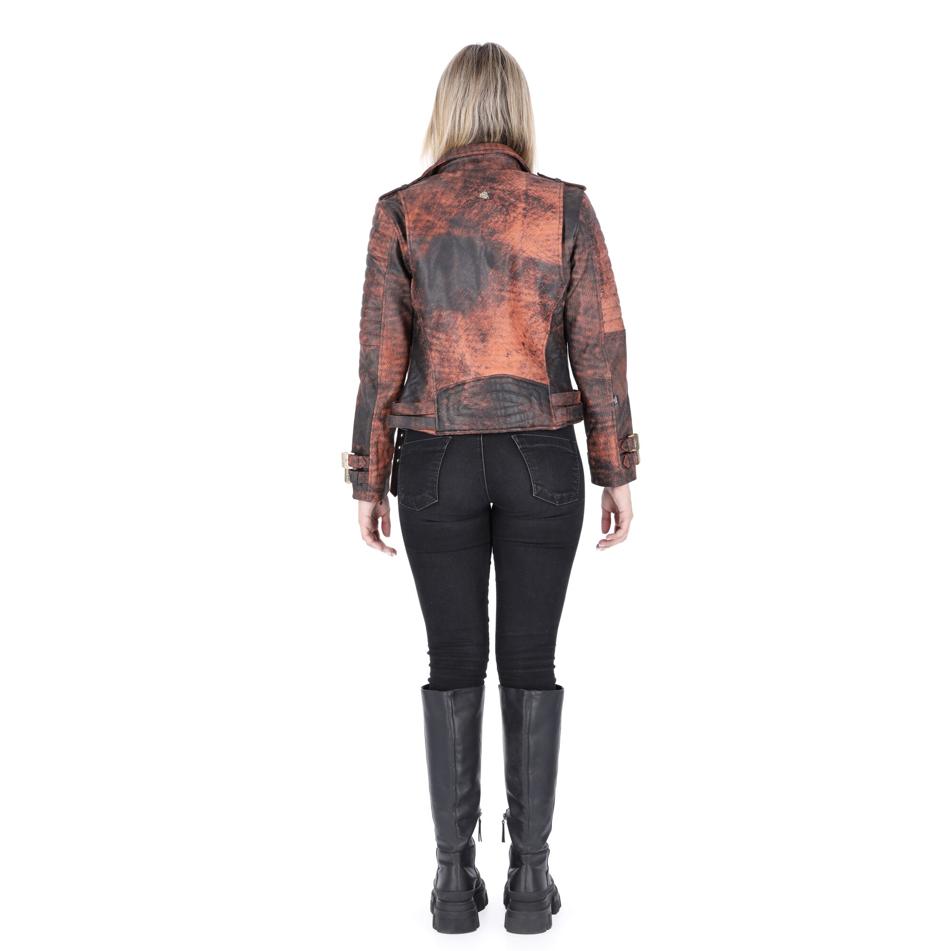 Chaqueta en Cuero Envejecido Base Terracota W16