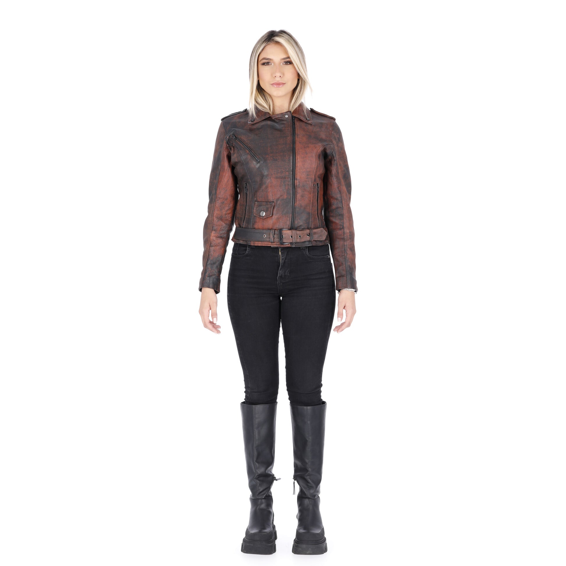 Chaqueta en Cuero Envejecido Base Terracota W48