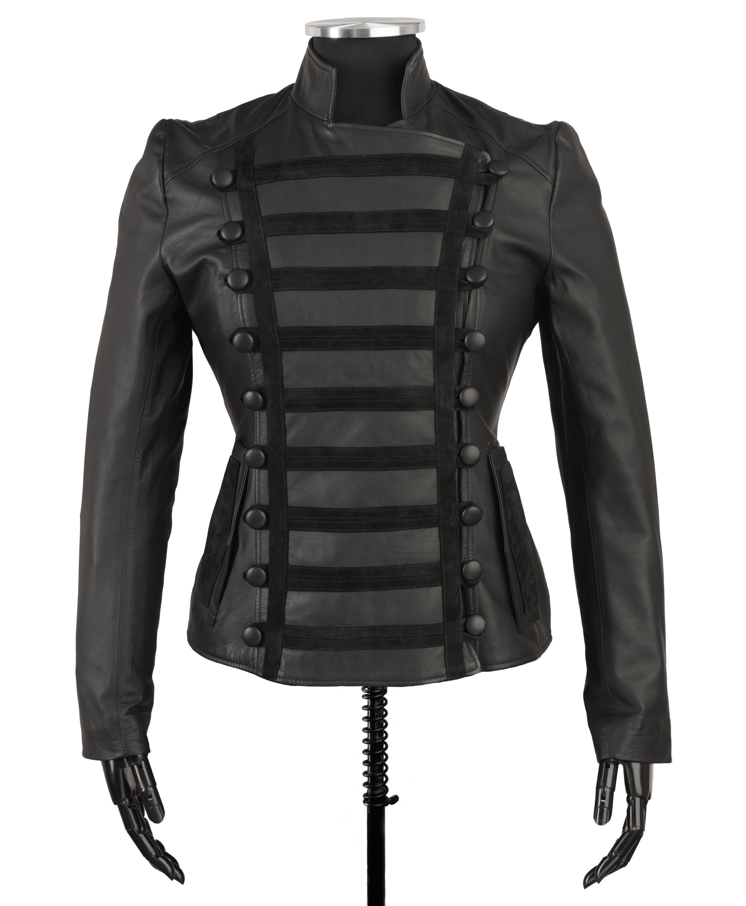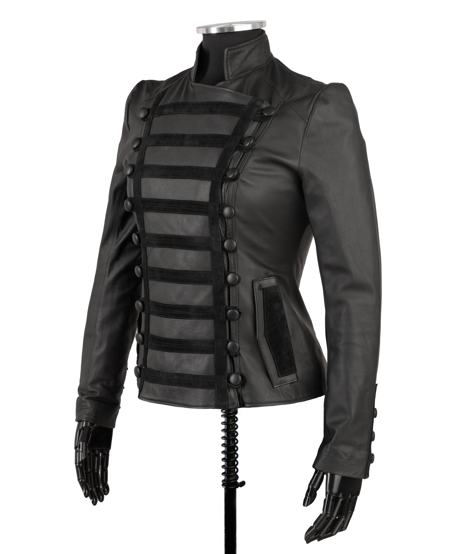 Chaqueta de Mujer Color Negro, 100% cuero. Decorativo en gamuza, botones decorativos, botones en mangas, forro interno en poliéster, durabilidad a largo plazo, disponible en talla XS, S, M, L, XL, XXL, silueta SlimFit.